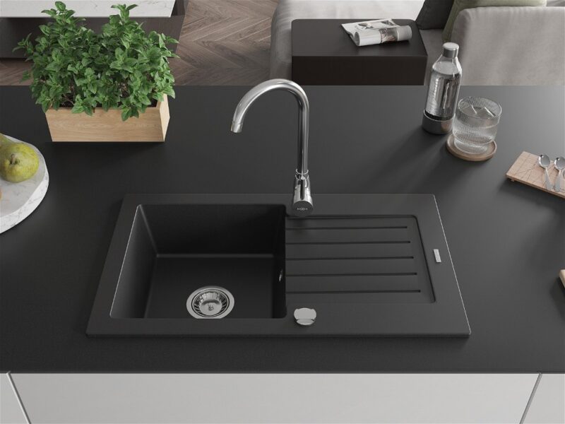 MEXEN MEXEN – Pablo granitový drez 1 s odkvapkávačom 752×436 mm, čierna 6510751010-77