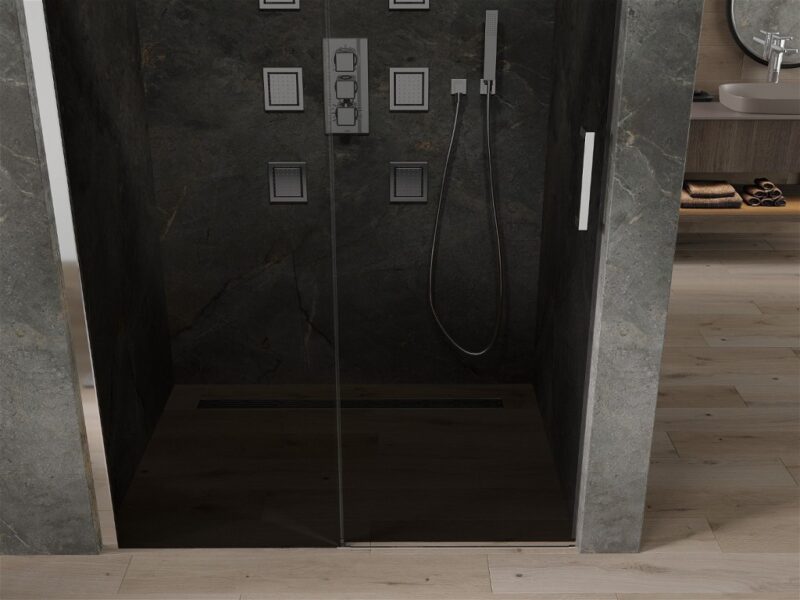 MEXEN – OMEGA posuvné dvere 110×190 cm 8 mm chróm, grey so sadou pre niku 825-110-000-01-40