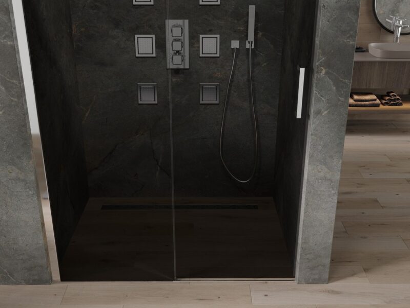MEXEN – OMEGA posuvné dvere 160×190 cm 8 mm chróm, grey so sadou pre niku 825-160-000-01-40