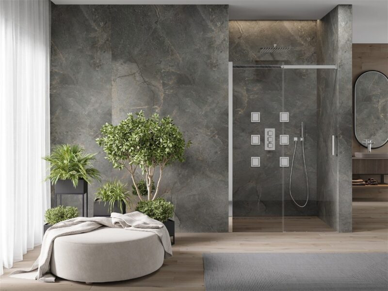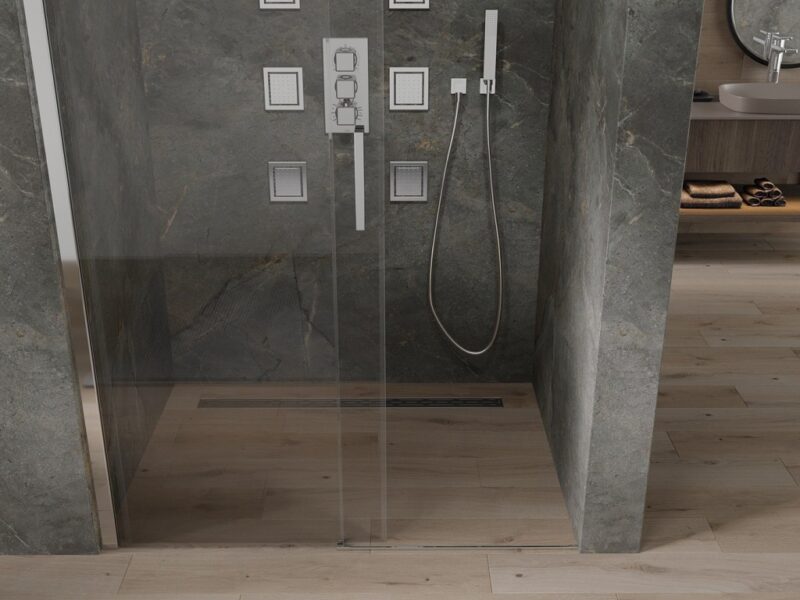 MEXEN – Omega posuvné sprchové dvere 160, transparent, chróm so sadou pre niku 825-160-000-01-00