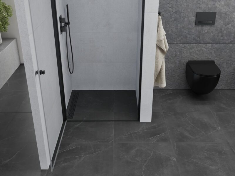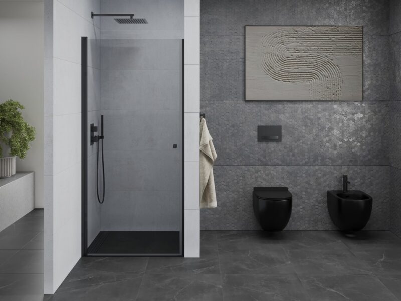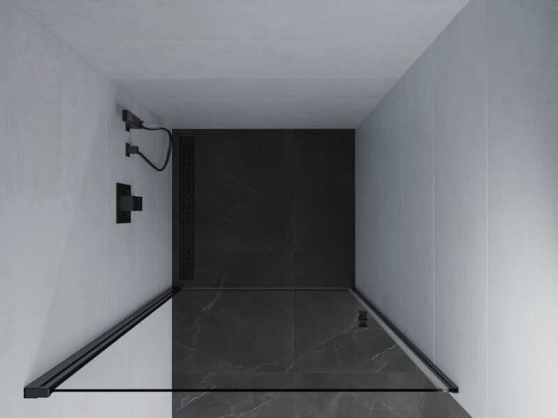 MEXEN – PRETORIA krídlové dvere 90×190 cm 6mm, čierne, transparent so stenovým profilom 852-090-000-70-00