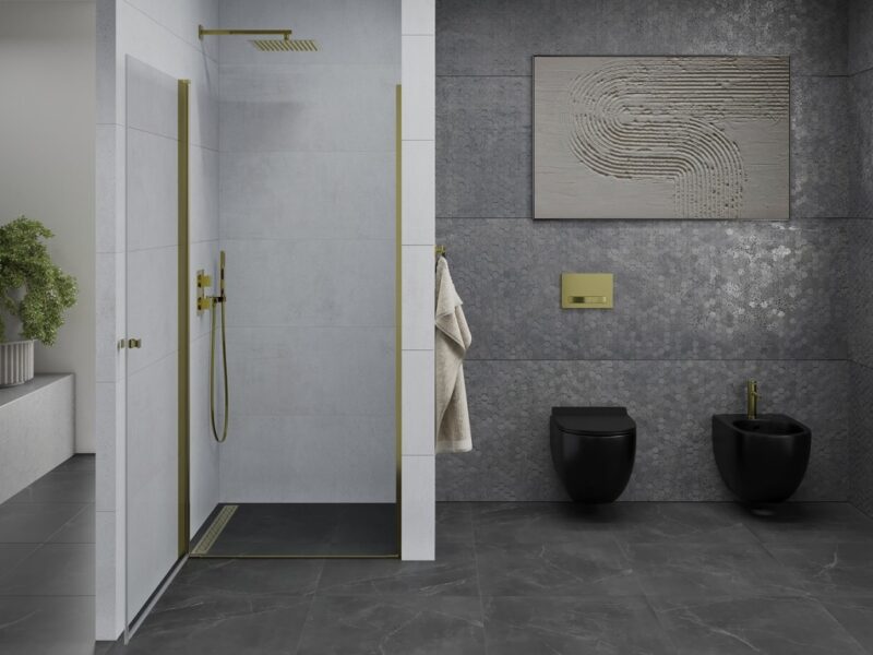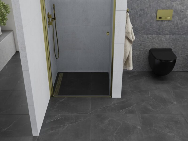 MEXEN – PRETORIA krídlové dvere 90×190 cm 6mm, zlatá, so stenovým profilom 852-090-000-50-00
