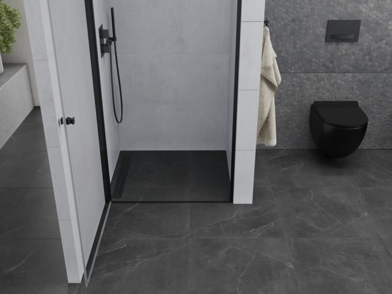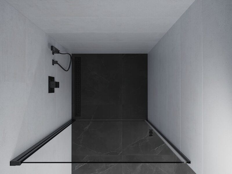 MEXEN – Pretoria Sprchové dvere krídlové 70, transparent, čierna sa stenovým profilom 852-070-000-70-00