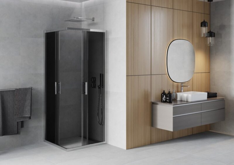 Technické dáta: Rozmer: 70×70 cm Výška: 190 cm Montáž: Univerzálna Vstup: Posuvné dvere Farba skla: Grafit Povrchová úprava: Chrome Typ skla: Tvrdené Hrúbka skla: 5 mm Profil: Hliník Povrchová úprava pre ľahké čistenie: Áno Vyrovnanie nerovností steny: Áno Nastavenie šírky: Áno Možné namontovať na bazénik alebo dlaždice: Áno Kovová rukoväť Súprava tesnení na odvod vody Hliníkový prah dverí(GT) Ean: 5903163382806