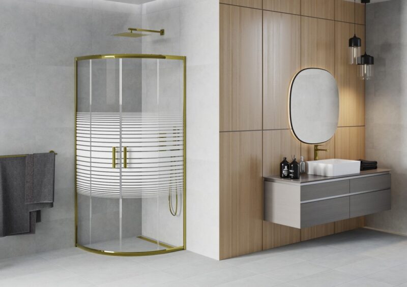 MEXEN – Rio sprchovací kút štvrťkruh 70 x 70, pruhy, zlatá 863-070-070-50-20