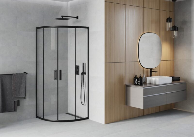 MEXEN – Rio sprchovací kút štvrťkruh 80 x 80, transparent, čierna 863-080-080-70-00