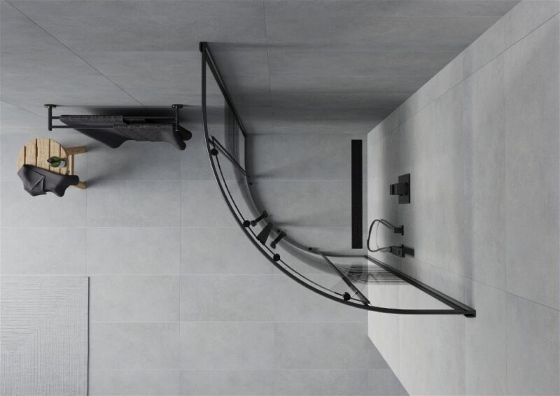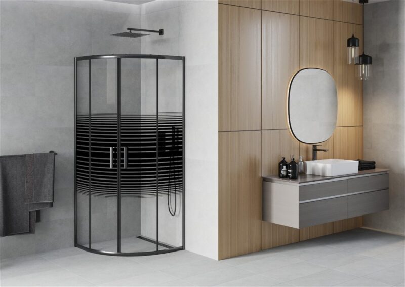 MEXEN – Rio sprchovací kút štvrťkruh 90 x 90, pruhy, čierna 863-090-090-70-20
