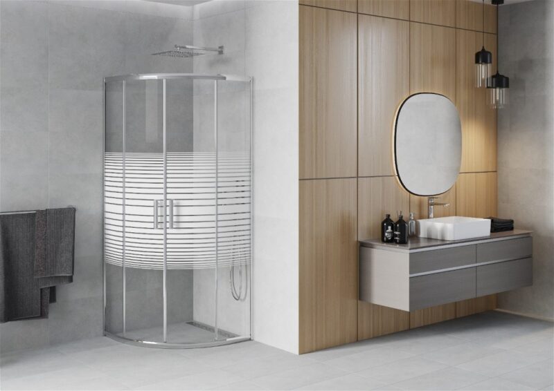 MEXEN – Rio Sprchový kút 70×70, sklo prúžky, chróm 863-070-070-01-20