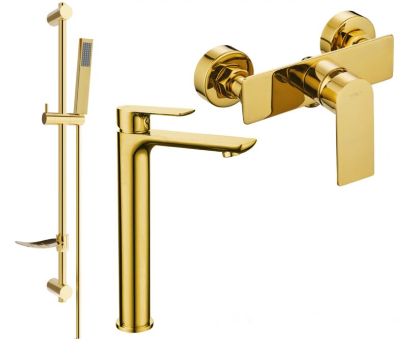 MEXEN/S – Alfa DF02 Set umývadlovej a sprchová batéria s príslušenstvom, zlato 745714DF02-50