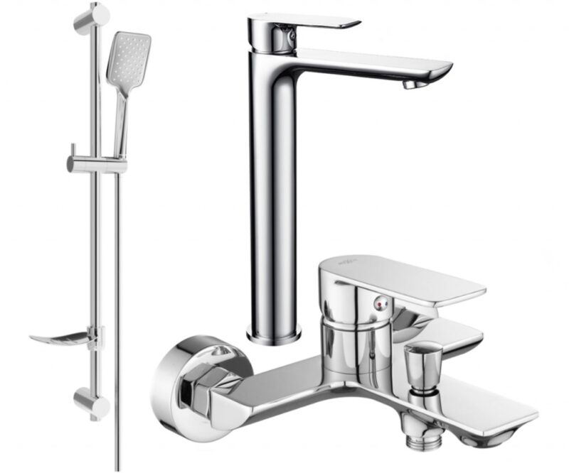 MEXEN/S – Alfa DF62 Set umývadlové a vaňové batérie s príslušenstvom, chróm