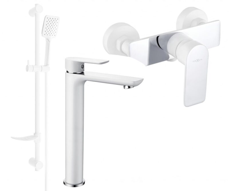 MEXEN/S – Alfa DF62 Set umývadlovej a sprchovej batérie s príslušenstvom, bielo/chróm 745714DF62-02