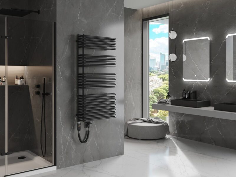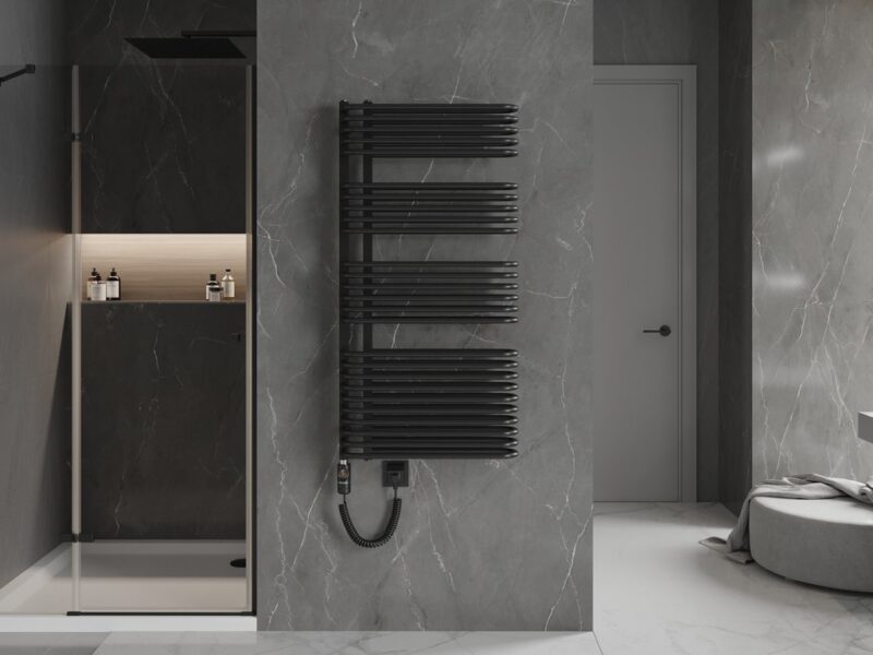 Technické dáta: Výška: 1000 mm Šírka: 500 mm Hĺbka: 135 mm Čierna farba Materiál: oceľ Vykurovací výkon: 900W Počet vykurovacích tyčí: 26 Celková dĺžka ohrievača: 866 mm Dĺžka vykurovacieho telesa: 750 mm Dĺžka napájacieho kábla: 1,5m Prevádzkové napätie: 230V/50Hz Stupeň krytia: IP44 Dotykové ovládanie pomocou LED displeja Dodatočná ochrana proti chodu na sucho Vstavaný termostat udržuje požadovanú teplotu radiátora Vysoko kvalitný, odolný náter odolný proti korózii Pre správnu funkciu musí byť radiátor naplnený vodou alebo zmesou vody, napr. s glykolom Sada obsahuje: závesy, montážnu sadu a záslepky Funkcia radiátora: – Sensitive umožňuje nastaviť teplotu v rozmedzí 40 ° C-65 ° C – Comfort má možnosť sušenia, ktorá umožňuje nastaviť teplotu ohrevu na zvolenej hodinovej stupnici – Detská poistka umožňuje uzamknúť ovládač kúrenia(GT) Ean: 5905315238658