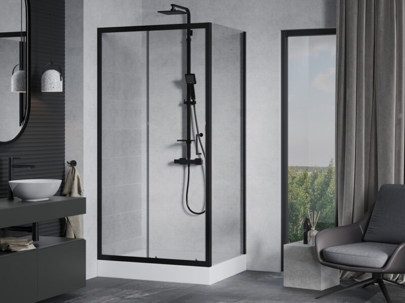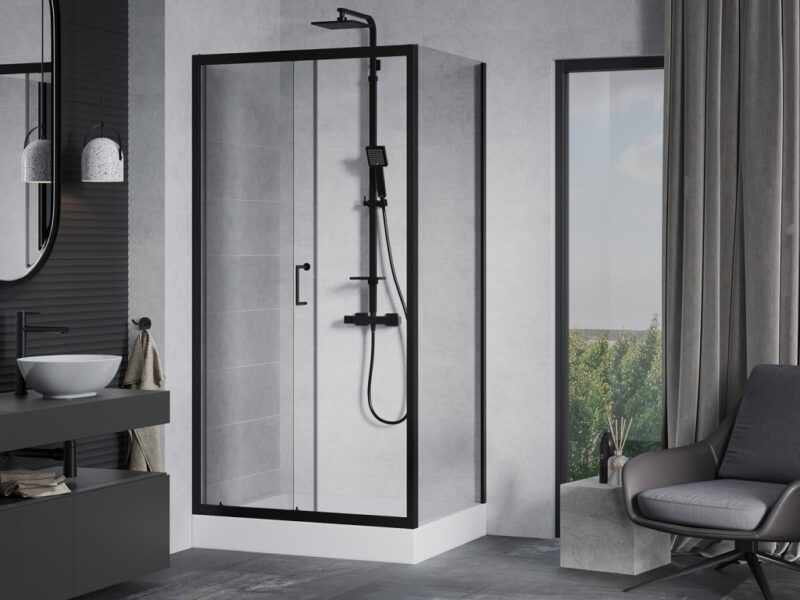 MEXEN/S – Apia Sprchovací kút 120×90, transparent, čierna + vanička Rio 840-120-090-70-00-4510