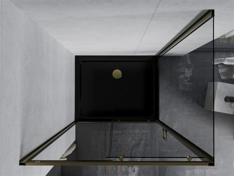 Technické údaje kabíny: Rozmer: 130×100 cm (dvere 130 cm, stena 100 cm) Výška: 190 cm Montáž: Univerzálna Vstup: Posuvné dvere Farba skla: Transparent – Transparent Povrchová úprava: zlatá Typ skla: Tvrdené Hrúbka skla: 5 mm Profil: Hliník Ľahko čistiteľný povlak: Áno Vyrovnanie nerovností steny: Áno Nastavenie šírky: Áno Možno inštalovať na sprchovú vaničku alebo dlaždice: Áno Kovová rukoväť Súprava tesnení na odvod vody Hliníkový prah tesniace dvere Technické dáta sprchovej vaničky: Rozmer: 130 x 100 x 5 cm Čierna farba Typ: Obdĺžnikový, Slim Materiál: sanitárny akryl Vystužené dno Kompletný so sifónom vyčisteným zhora Priemer odtoku: 90 mm Povrchová úprava korku: zlatá(GT) Ean: 5907709152700