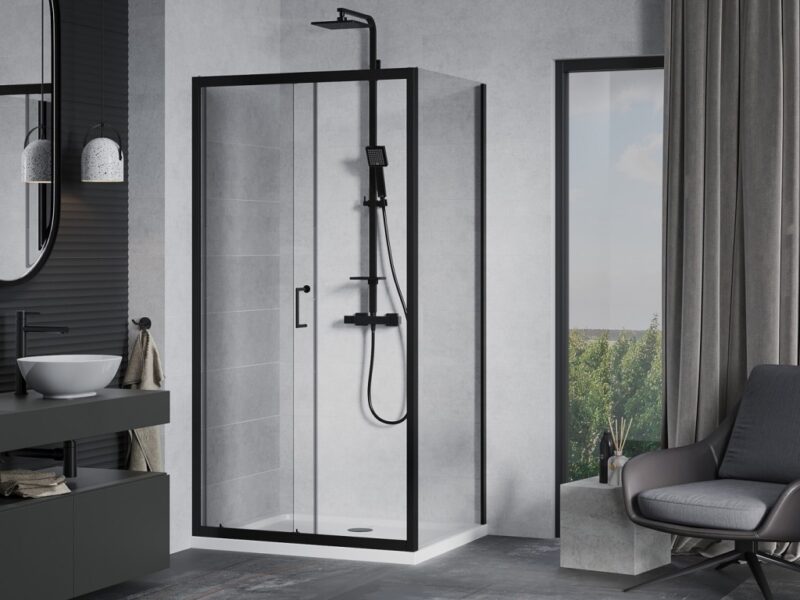 MEXEN/S – Apia Sprchovací kút 130×70, transparent, čierna + vanička so sifónom 840-130-070-70-00-4010B