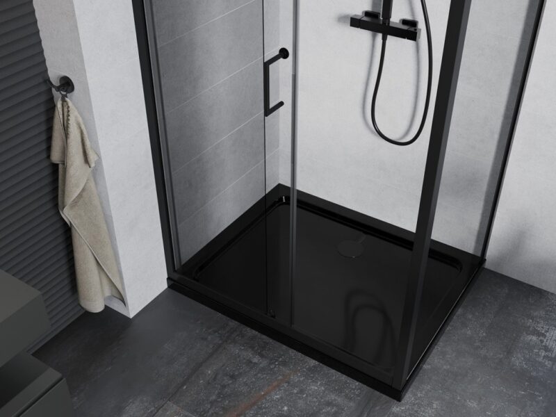 Technické údaje kabíny: Rozmer: 130×70 cm (dvere 130 cm, stena 70 cm) Výška: 190 cm Montáž: Univerzálna Vstup: Posuvné dvere Farba skla: Transparent – Transparent Povrchová úprava: čierna Typ skla: Tvrdené Hrúbka skla: 5 mm Profil: Hliník Ľahko čistiteľný povlak: Áno Vyrovnanie nerovností steny: Áno Nastavenie šírky: Áno Možno inštalovať na sprchovú vaničku alebo dlaždice: Áno Kovová rukoväť Súprava tesnení na odvod vody Hliníkový prah tesniace dvere Technické dáta sprchovej vaničky: Rozmery: 130 x 70 x 5 cm Čierna farba Typ: Obdĺžnikový, Slim Materiál: sanitárny akryl Vystužené dno Kompletný so sifónom vyčisteným zhora Priemer odtoku: 90 mm Povrchová úprava korku: čierna(GT) Ean: 5907709153158