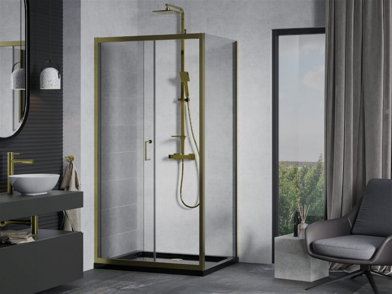 Technické údaje kabíny: Rozmer: 130×80 cm (dvere 130 cm, stena 80 cm) Výška: 190 cm Montáž: Univerzálna Vstup: Posuvné dvere Farba skla: Transparent – Transparent Povrchová úprava: zlatá Typ skla: Tvrdené Hrúbka skla: 5 mm Profil: Hliník Ľahko čistiteľný povlak: Áno Vyrovnanie nerovností steny: Áno Nastavenie šírky: Áno Možno inštalovať na sprchovú vaničku alebo dlaždice: Áno Kovová rukoväť Súprava tesnení na odvod vody Hliníkový prah tesniace dvere Technické dáta sprchovej vaničky: Rozmery: 130 x 80 x 5 cm Čierna farba Typ: Obdĺžnikový, Slim Materiál: sanitárny akryl Vystužené dno Kompletný so sifónom vyčisteným zhora Priemer odtoku: 90 mm Povrchová úprava korku: zlatá(GT) Ean: 5907709152687