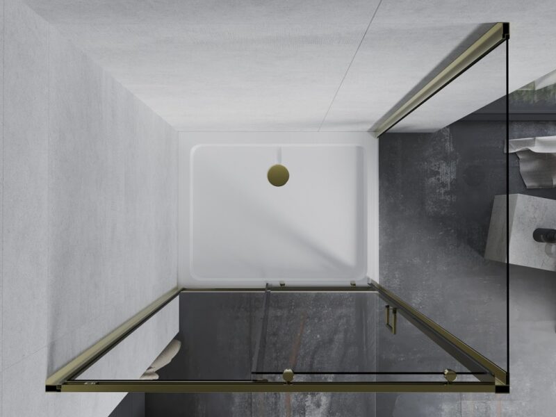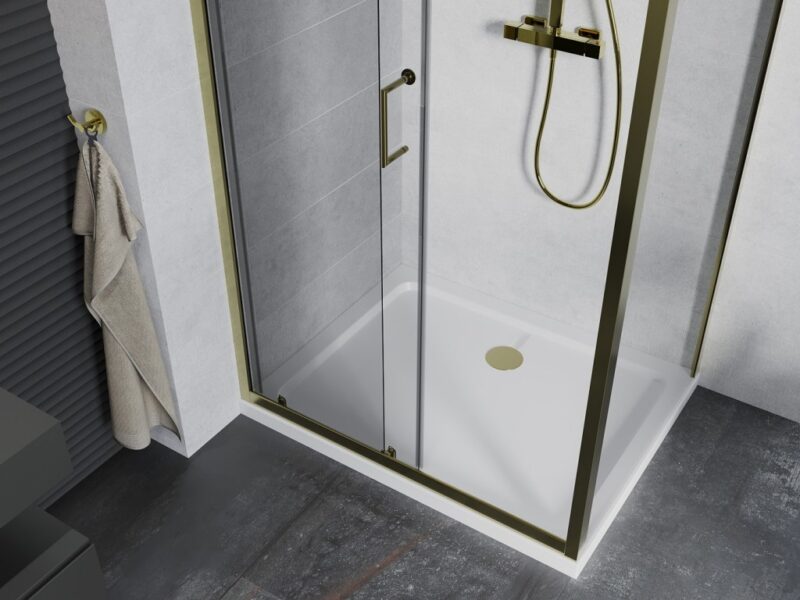 MEXEN/S – Apia Sprchovací kút 140×100, transparent, zlato + vanička so sifónom 840-140-100-50-00-4010G