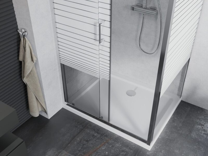 MEXEN/S – Apia Sprchovací kút 140×70, transparent / dekor, chróm + vanička so sifónom 840-140-070-01-20-4010