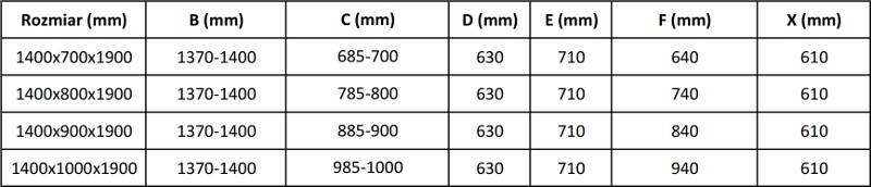 Veľkosť: 140×70 cm (dvere 140 cm, stena 70 cm)