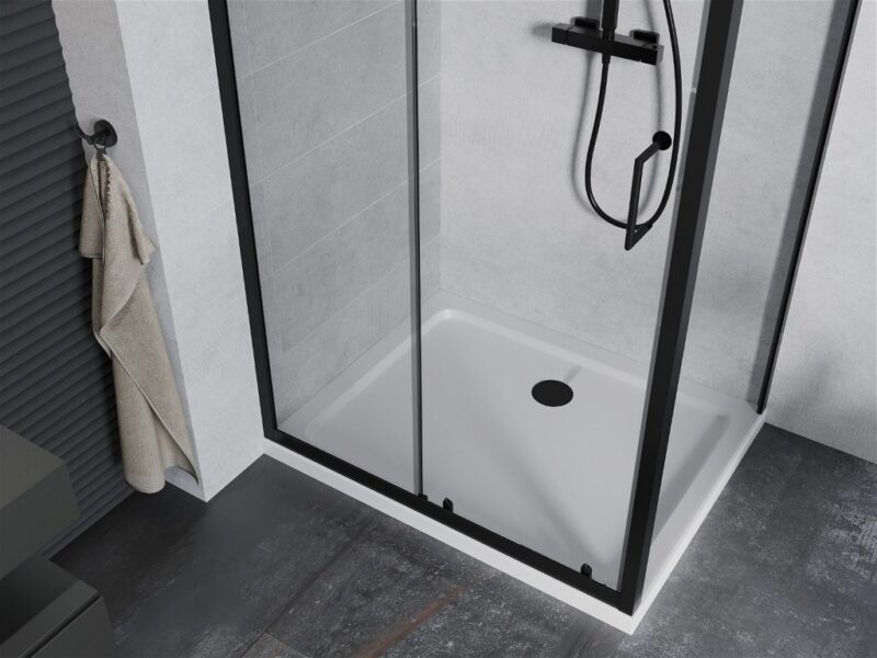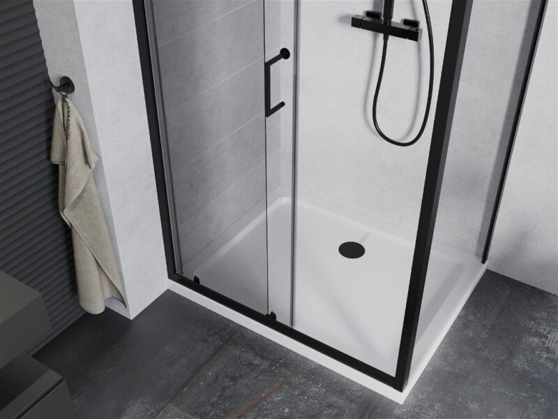 MEXEN/S – Apia Sprchovací kút 140×90, transparent, čierna + vanička so sifónom 840-140-090-70-00-4010B