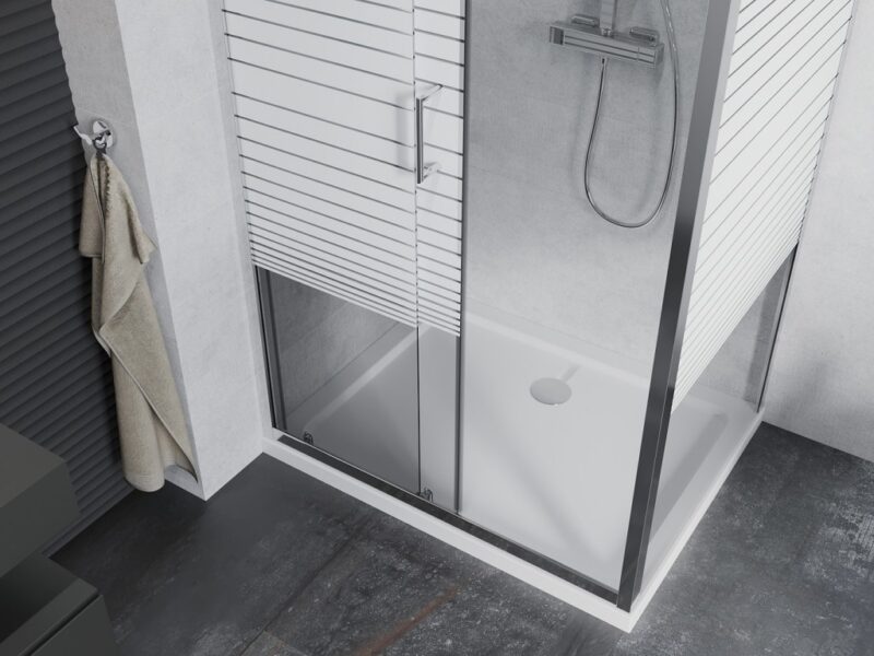 MEXEN/S – Apia Sprchovací kút 140×90, transparent / dekor, chróm + vanička so sifónom 840-140-090-01-20-4010