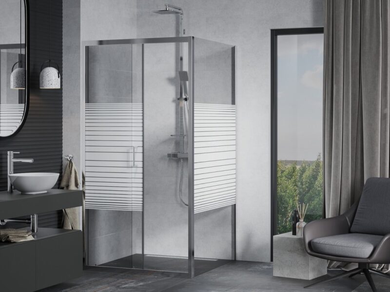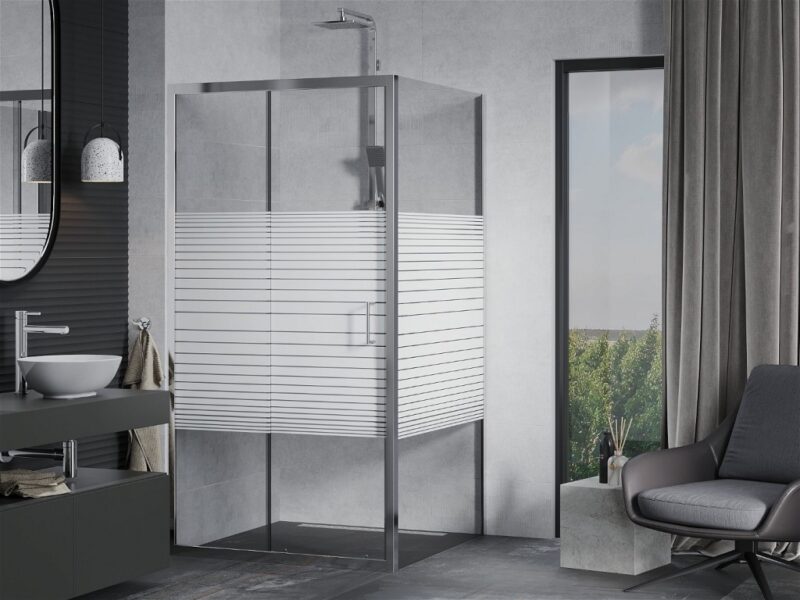 MEXEN/S – APIA sprchovací kút 90×90, dekor – pruhy, chróm 840-090-090-01-20
