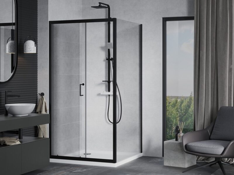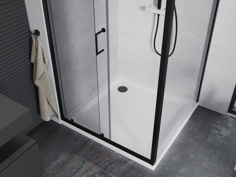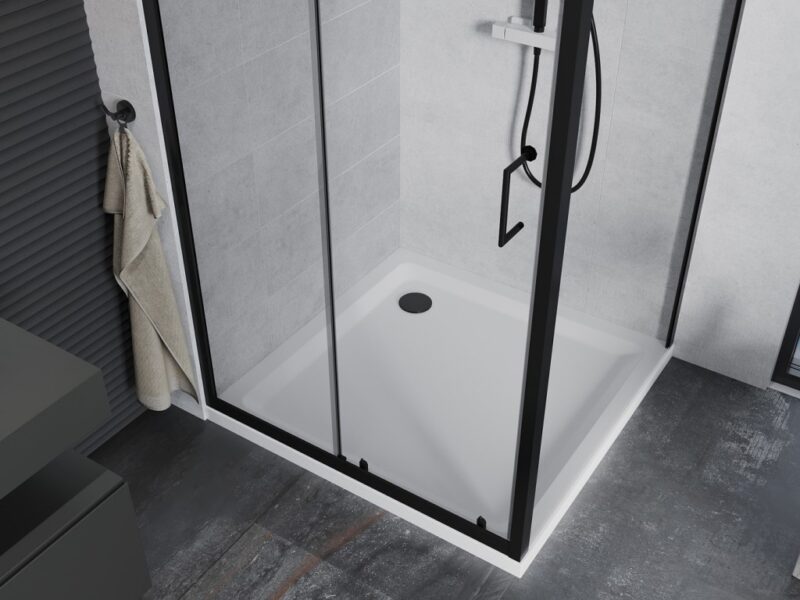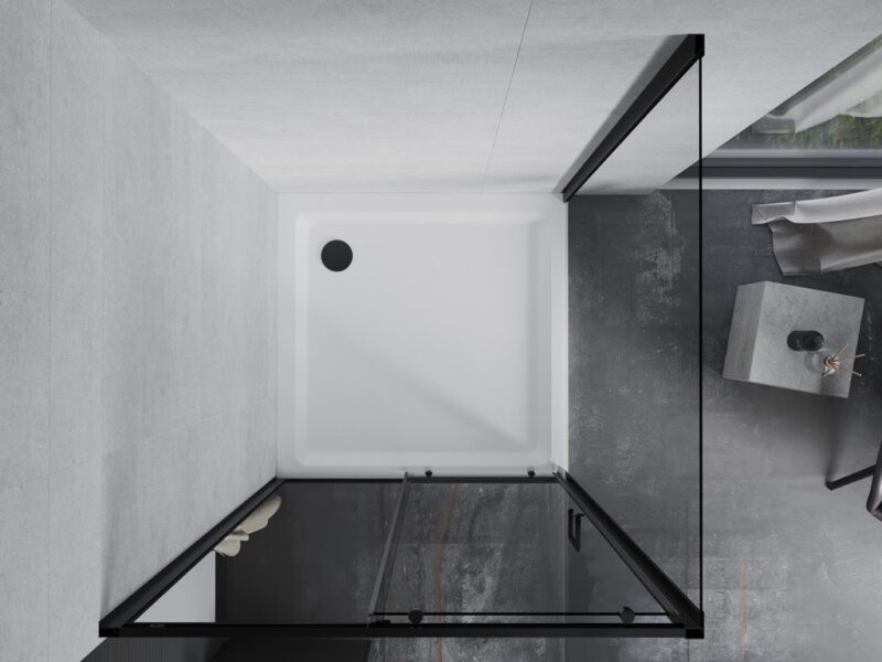 MEXEN/S – Apia Sprchovací kút 90×90, transparent, čierna + vanička so sifónom 840-090-090-70-00-4010B