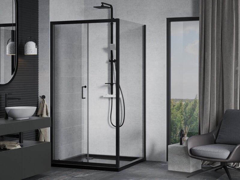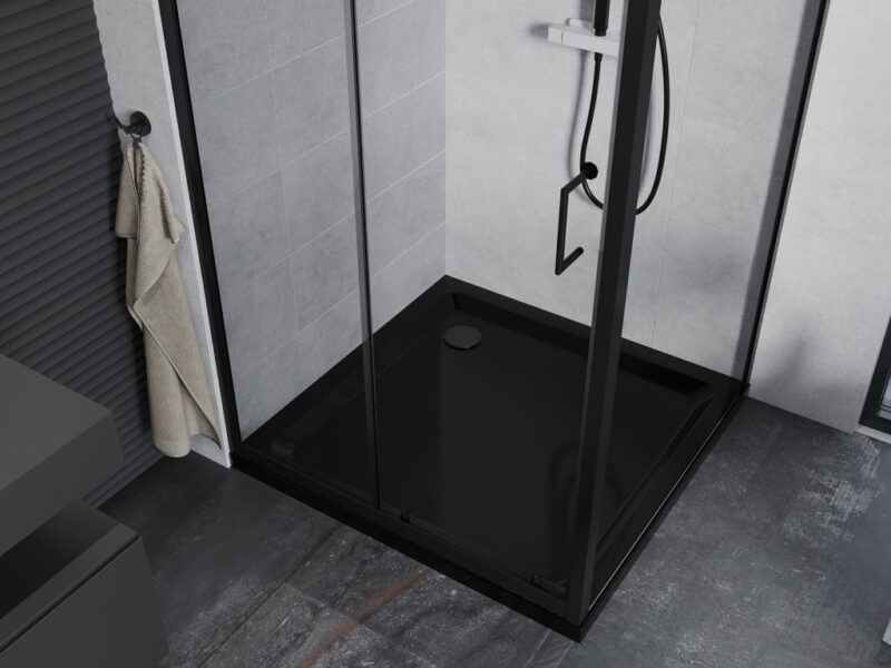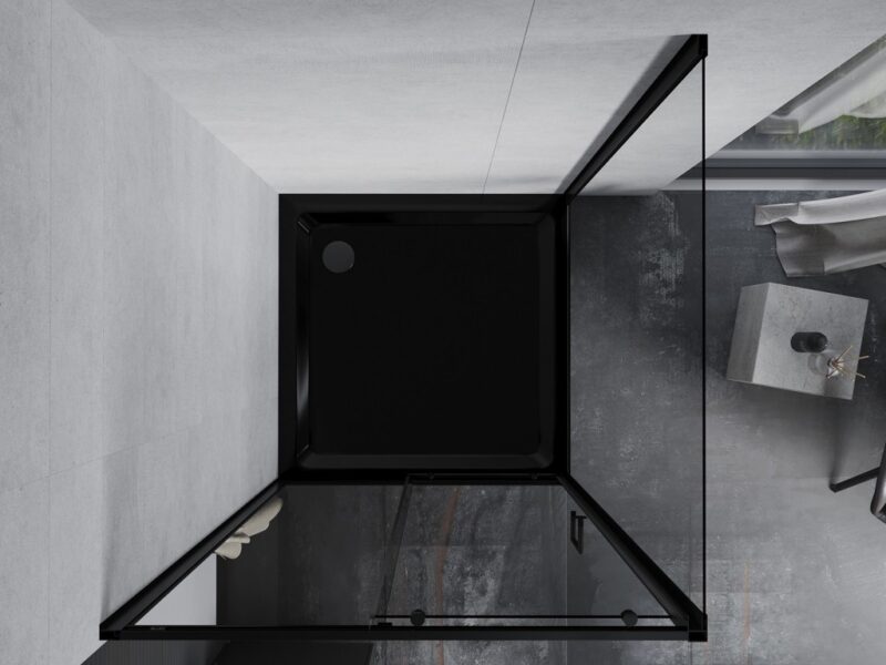 MEXEN/S – Apia Sprchovací kút 90×90, transparent, čierna + vanička so sifónom 840-090-090-70-00-4070B