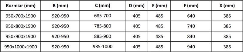 Veľkosť: 95 x 90 cm (dvere 95 cm, stena 90 cm)
