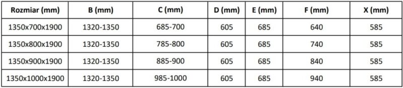 Rozmer: 135×90 cm (dvere 135 cm, stena 90 cm)