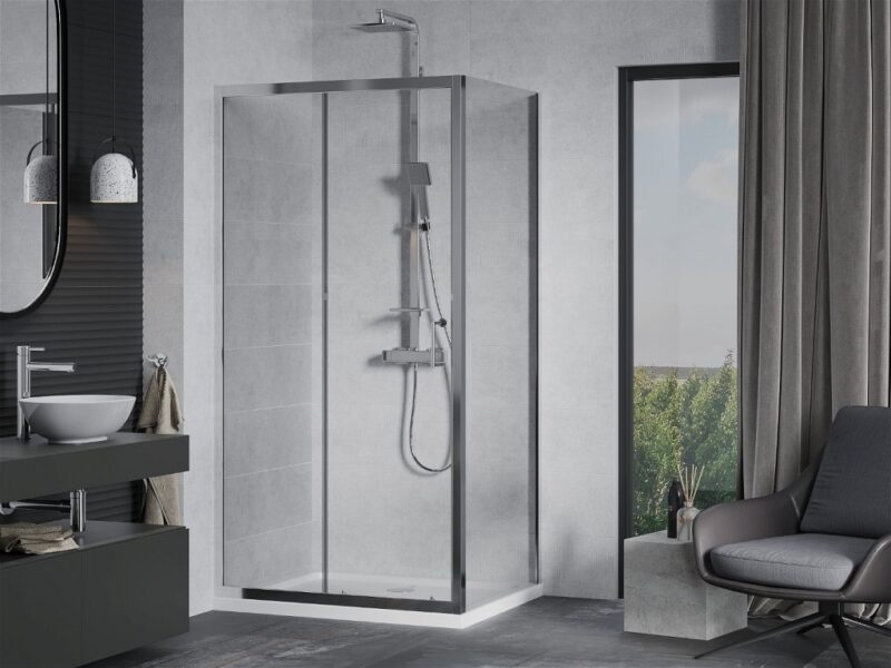 MEXEN/S – Apia sprchovací kút posuvný 100×80, sklo transparent, chrom + vanička 840-100-080-01-00-4010
