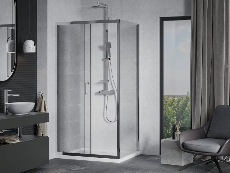 MEXEN/S – Apia sprchovací kút posuvný 110×70, sklo transparent, chrom + vanička 840-110-070-01-00-4010