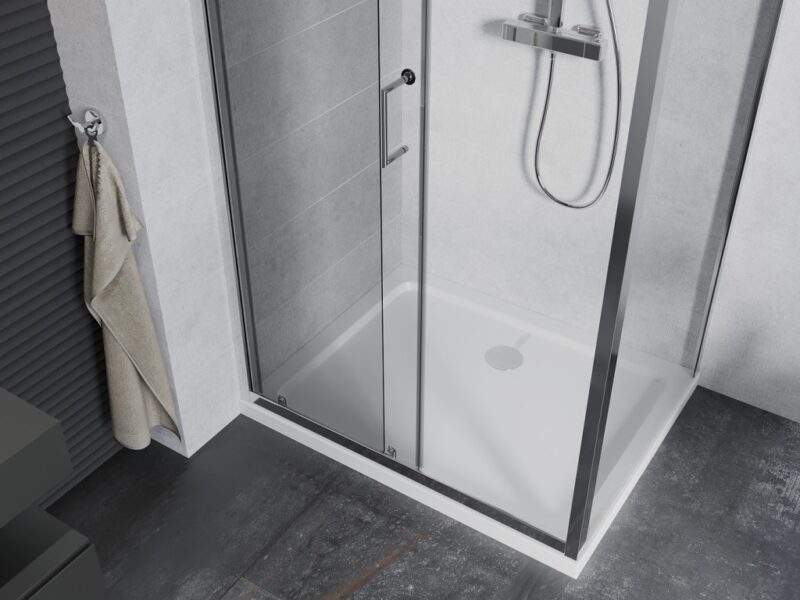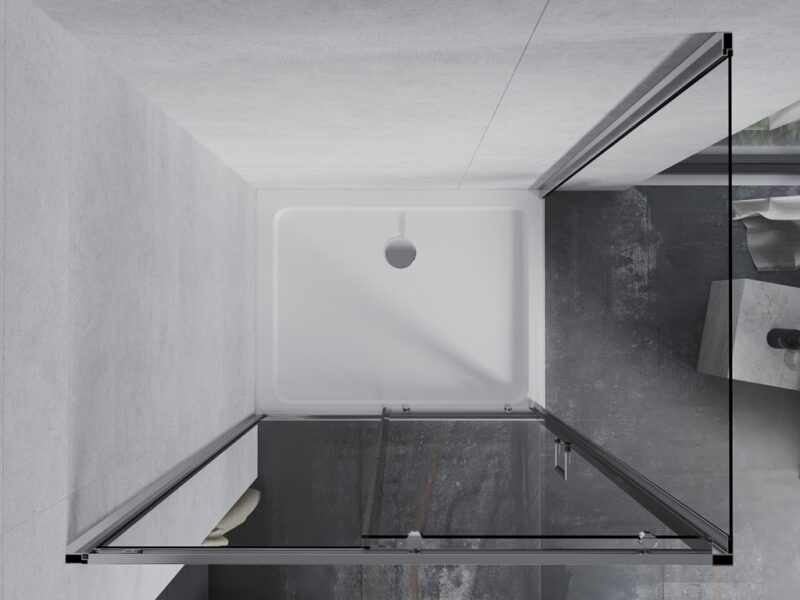 MEXEN/S – Apia sprchovací kút posuvný 90×80, sklo transparent, chrom + vanička 840-090-080-01-00-4010
