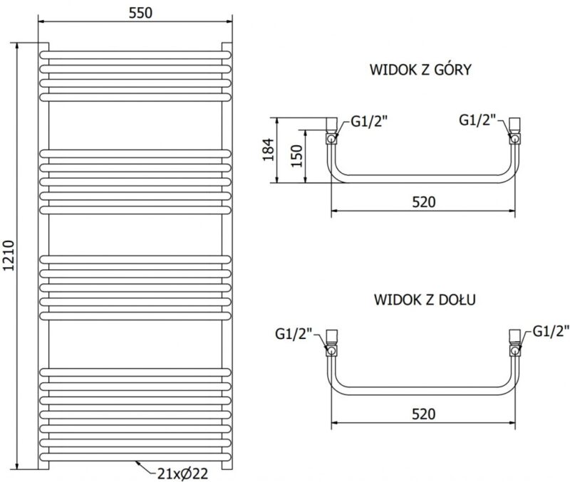 Technické dáta: Výška: 1210 mm Šírka: 550 mm Hĺbka: 150 mm biela farba Materiál: oceľ Vykurovací výkon: 600W Počet vykurovacích tyčí: 21 Celková dĺžka ohrievača: 656 mm Dĺžka vykurovacieho telesa: 540 mm Dĺžka napájacieho kábla: 1,5m Prevádzkové napätie: 230V/50Hz Stupeň krytia: IP44 Dotykové ovládanie pomocou LED displeja Dodatočná ochrana proti chodu na sucho Vstavaný termostat udržuje požadovanú teplotu radiátora Vysoko kvalitný, odolný náter odolný proti korózii Pre správnu funkciu musí byť radiátor naplnený vodou alebo zmesou vody, napr. s glykolom Sada obsahuje: závesy, montážnu sadu a záslepky Funkcia radiátora: – Sensitive umožňuje nastaviť teplotu v rozmedzí 40 ° C-65 ° C – Comfort má možnosť sušenia, ktorá umožňuje nastaviť teplotu ohrevu na zvolenej hodinovej stupnici – Detská poistka umožňuje uzamknúť ovládač kúrenia(GT) Ean: 5905315238535