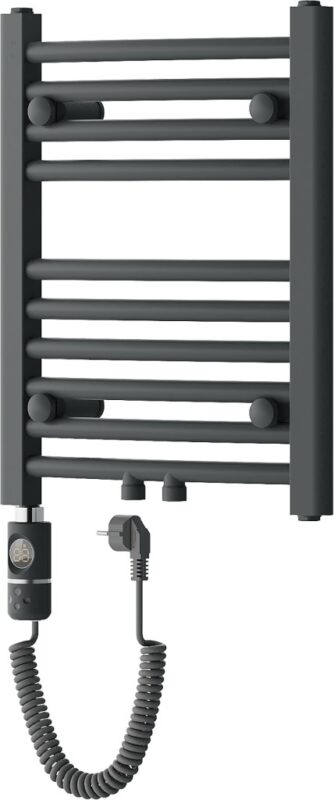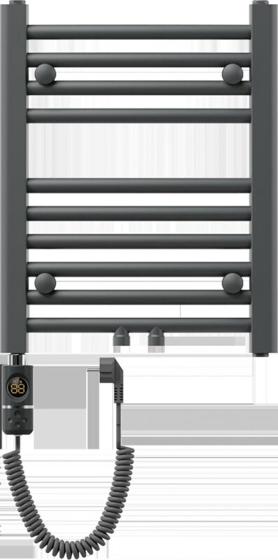 Technické dáta: Výška: 500 mm Šírka: 400 mm Hĺbka: 44 mm Farba: Antracit Materiál: oceľ Vykurovací výkon: 300W Počet vykurovacích tyčí: 10 Celková dĺžka ohrievača: 426 mm Dĺžka vykurovacieho telesa: 310 mm Dĺžka napájacieho kábla: 1,5m Prevádzkové napätie: 230V/50Hz Stupeň krytia: IP44 Dotykové ovládanie pomocou LED displeja Dodatočná ochrana proti chodu na sucho Vstavaný termostat udržuje požadovanú teplotu radiátora Vysoko kvalitný, odolný náter odolný proti korózii Pre správnu funkciu musí byť radiátor naplnený vodou alebo zmesou vody, napr. s glykolom Sada obsahuje: závesy, montážnu sadu a záslepky Funkcia radiátora: – Sensitive umožňuje nastaviť teplotu v rozmedzí 40 ° C-65 ° C – Comfort má možnosť sušenia, ktorá umožňuje nastaviť teplotu ohrevu na zvolenej hodinovej stupnici – Detská poistka umožňuje uzamknúť ovládač kúrenia(GT) Ean: 5905315233752