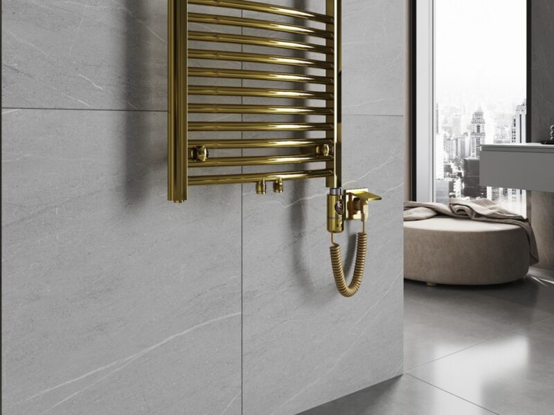Technické dáta: Výška: 900 mm Šírka: 600 mm Hĺbka: 56 mm Farba: Zlatá Materiál: oceľ Vykurovací výkon: 300W Počet vykurovacích tyčí: 17 Celková dĺžka ohrievača: 426 mm Dĺžka výhrevného telesa: 310 mm Dĺžka napájacieho kábla: 1,5m Prevádzkové napätie: 230V/50Hz Stupeň krytia: IP44 Dotykové ovládanie pomocou LED displeja Dodatočná ochrana proti chodu na sucho Vstavaný termostat udržuje požadovanú teplotu radiátora Vysoko kvalitný, odolný náter odolný proti korózii Pre správnu funkciu musí byť radiátor naplnený vodou alebo zmesou vody, napr. s glykolom Sada obsahuje: závesy, montážnu sadu a záslepky Funkcia radiátora: – Sensitive umožňuje nastaviť teplotu v rozmedzí 40 ° C-65 ° C – Comfort má možnosť sušenia, ktorá umožňuje nastaviť teplotu ohrevu na zvolenej hodinovej stupnici – Detská poistka umožňuje uzamknúť ovládač kúrenia(GT) Ean: 5905315233677