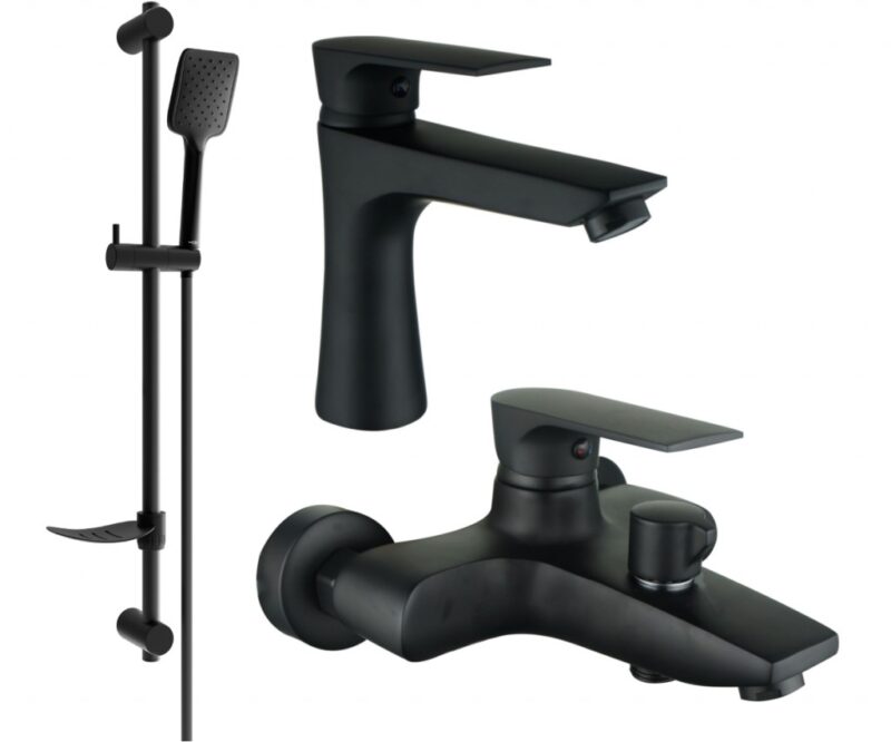 MEXEN/S – Axel DF62 Set umývadlové a vaňové batérie s príslušenstvom, čierna 73803DF62-70