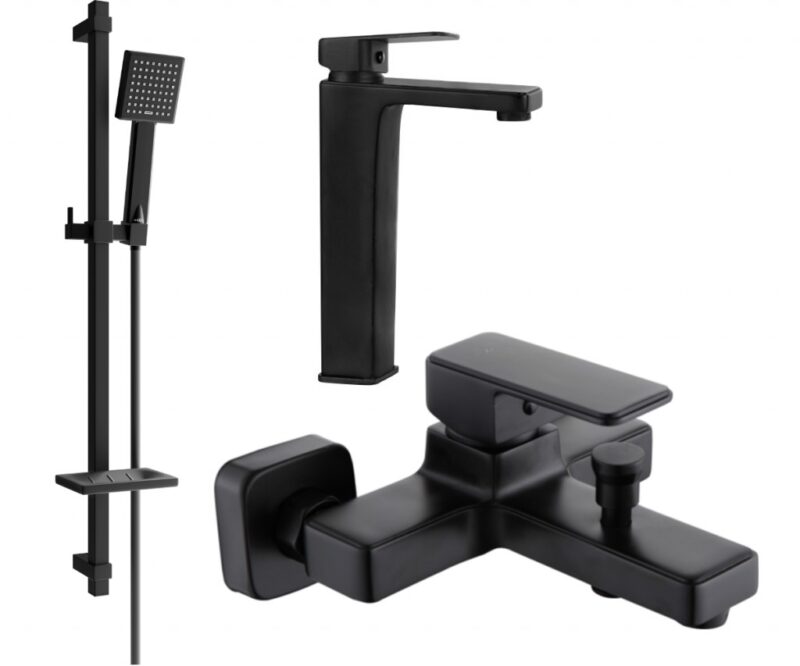 MEXEN/S – Cetus DQ45 Set umývadlovej a vaňovej batérie s príslušenstvom, čierna 744313DQ45-70
