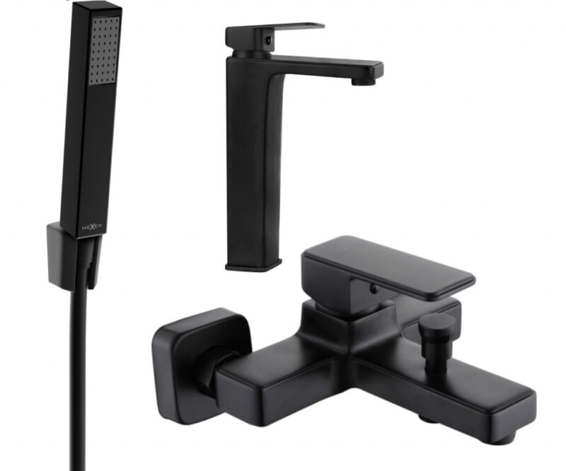 MEXEN/S – Cetus R77 Set umývadlovej a vaňovej batérie s príslušenstvom, čierna 744313R77-70