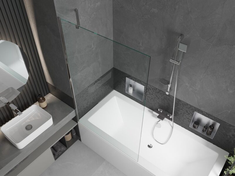 MEXEN/S – Cube obdĺžniková vaňa 170 x 80 cm s panelom + vaňová zástena 100, transparent, chróm 550517080X9510000001