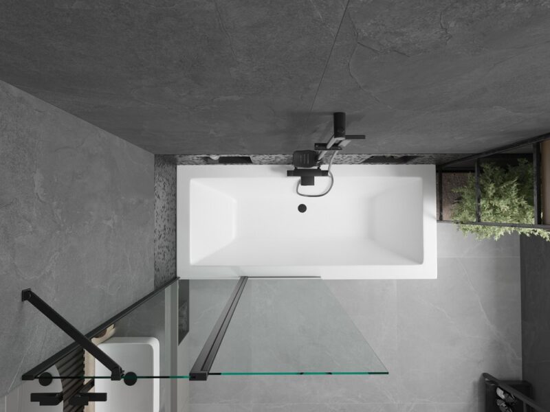 MEXEN/S – Cube obdĺžniková vaňa 170 x 80 cm s panelom + vaňová zástena 100, transparent, čierna 550517080X9410117000