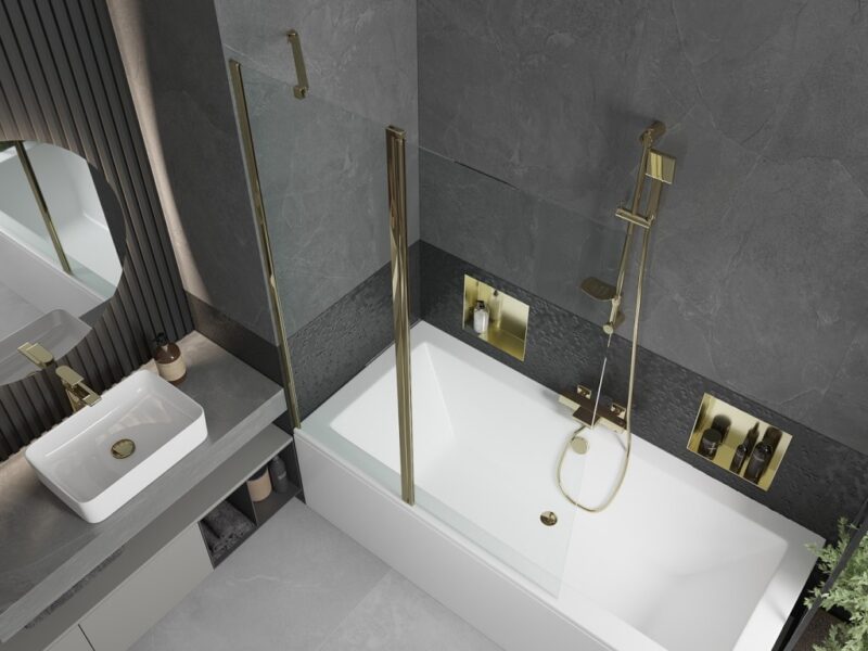 Špecifikácia produktu: Rozmer vane: 170 x 80 cm Materiál: sanitárny akryl biela farba Typ: Obdĺžnikový / Univerzálny Objem: 170 l Vrátane nastaviteľných nožičiek Odolnosť proti zmatneniu a UV žiareniu Puzdro: 170 cm (predný panel), 80 cm (bočný panel) Rozmer obrazovky: 120 x 150 cm Typ: 1-list Montáž: Univerzálna Typ: Pohyblivý Typ skla: Tvrdené Farba skla: Transparentný Hrúbka skla: 6mm Povrchová úprava: zlatá Ľahko čistiteľný povlak Vyrovnanie nerovností steny Súprava tesnení na odvod vody Zástena sa skladá z dvoch častí – pevnej steny a pohyblivého krídla(GT) Ean: 5905315202468