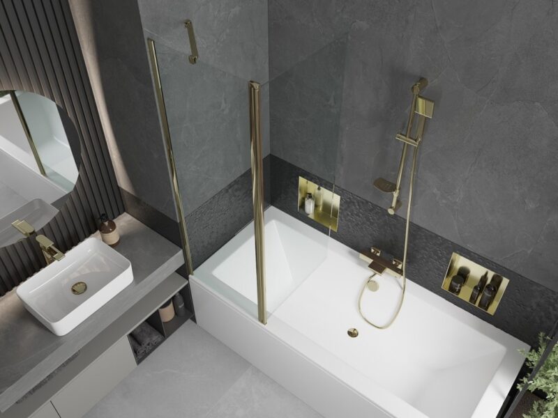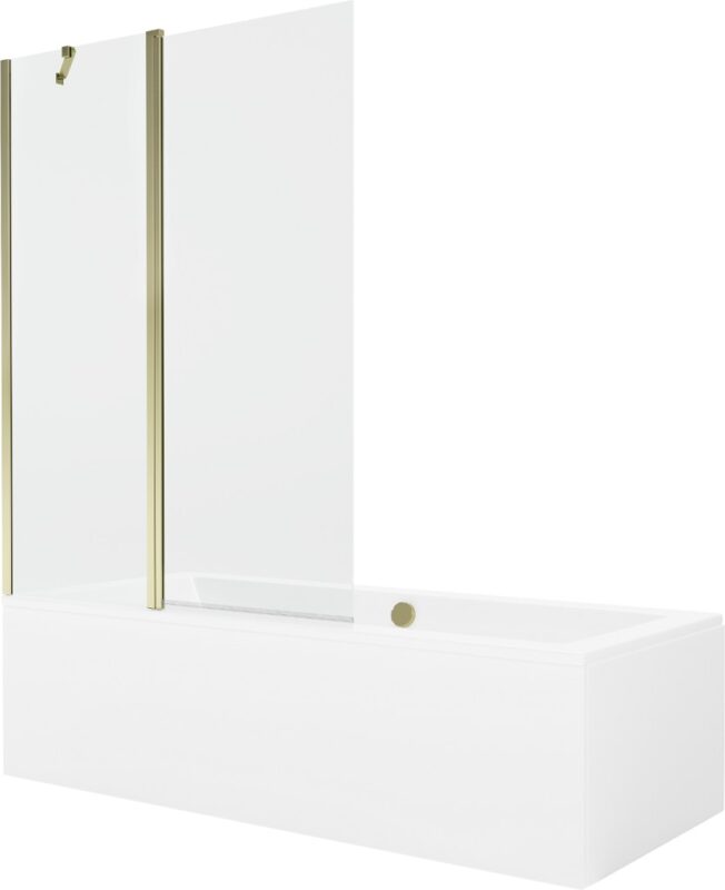 MEXEN/S – Cube obdĺžniková vaňa 170 x 80 cm s panelom + vaňová zástena 120, transparent, zlatá 550517080X9412115000