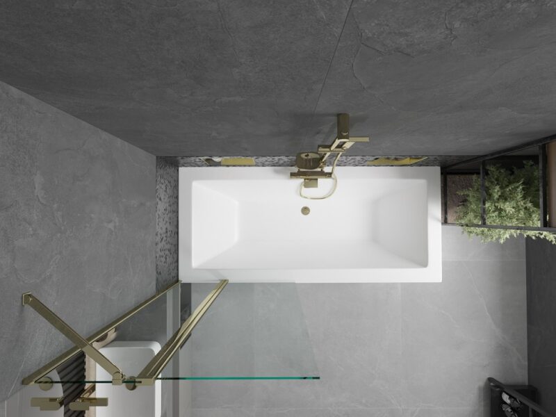 MEXEN/S – Cube obdĺžniková vaňa 170 x 80 cm s panelom + vaňová zástena 80, transparent, zlatá 550517080X9408115000