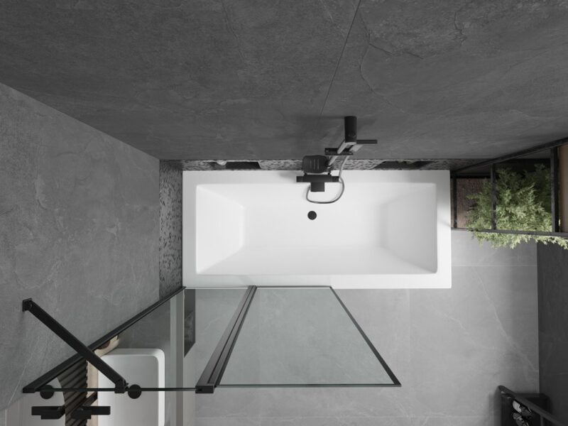 MEXEN/S – Cube obdĺžniková vaňa 180 x 80 cm s panelom + vaňová zástena 100, čierna vzor 550518080X9410117070