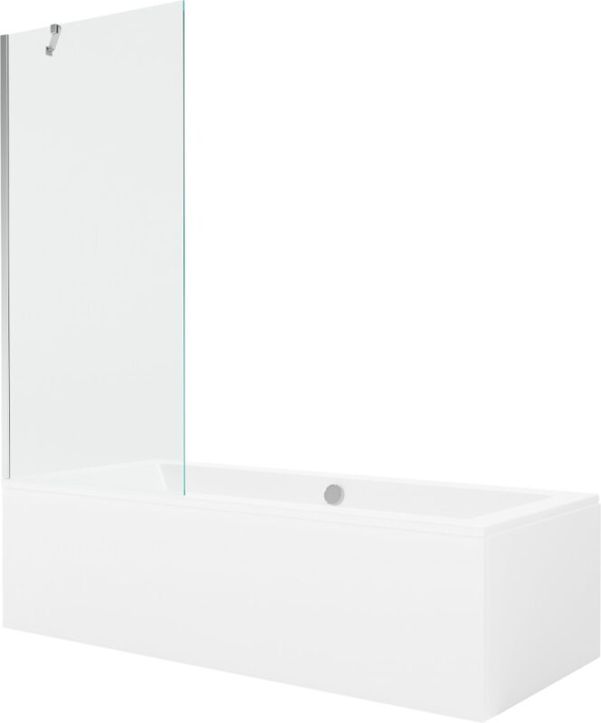 MEXEN/S – Cube obdĺžniková vaňa 180 x 80 cm s panelom + vaňová zástena 80, transparent, chróm 550518080X9508000001