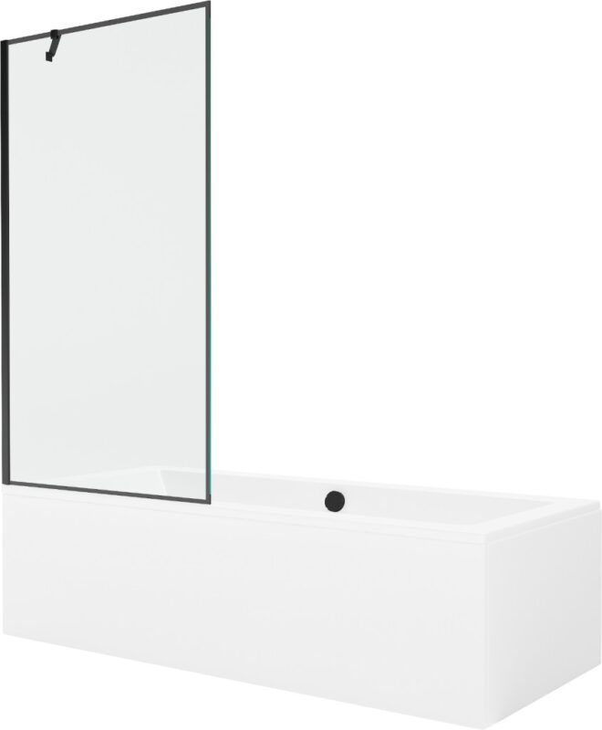 MEXEN/S – Cube obdĺžniková vaňa 180 x 80 cm s panelom + vaňová zástena 90, čierna vzor 550518080X9509007070