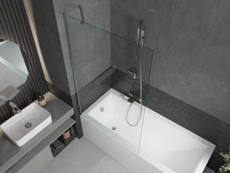 MEXEN/S – Cubik obdĺžniková vaňa 150 x 70 cm s panelom + vaňová zástena 100, transparent, chróm 550315070X9510000001