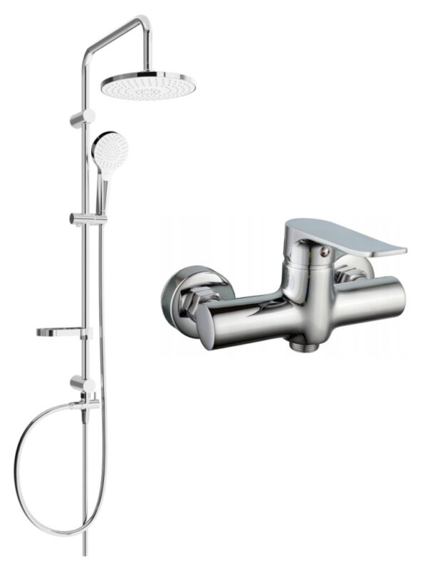 Technické dáta: Materiál stĺpika: Nerezová oceľ, ABS Povrchová úprava stĺpika: Chrome Výška: 950 mm Šírka stĺpika: 22 mm Vzdialenosť od steny: 380 mm Miska na mydlo Posuvný držiak na slúchadlo Nastaviteľné montážne držiaky Materiál dažďovej sprchy: Plast Povrchová úprava dažďovej sprchy: chróm / biela Rozmer dažďovej sprchy: ø225 mm Materiál slúchadiel: Plast Povrchová úprava slúchadiel: chróm / biela Počet funkcií: 3 Pripojenie: G 1/2″ Výška slúchadla: 230 mm Rozmery hlavy: ø108 mm Materiál hadice: Plášť z nerezovej ocele Povrchová úprava hadice: Chróm Dĺžka hadice: 150 cm Pripojenie: 1/2″ Mosadzné hroty Pružný materiál odolný proti rozťahovaniu a ohýbaniu Materiál batérie: mosadz Hlava: Keramická Povrchová úprava: Chrome Šírka: 150 mm(GT) Ean: 5907709181724